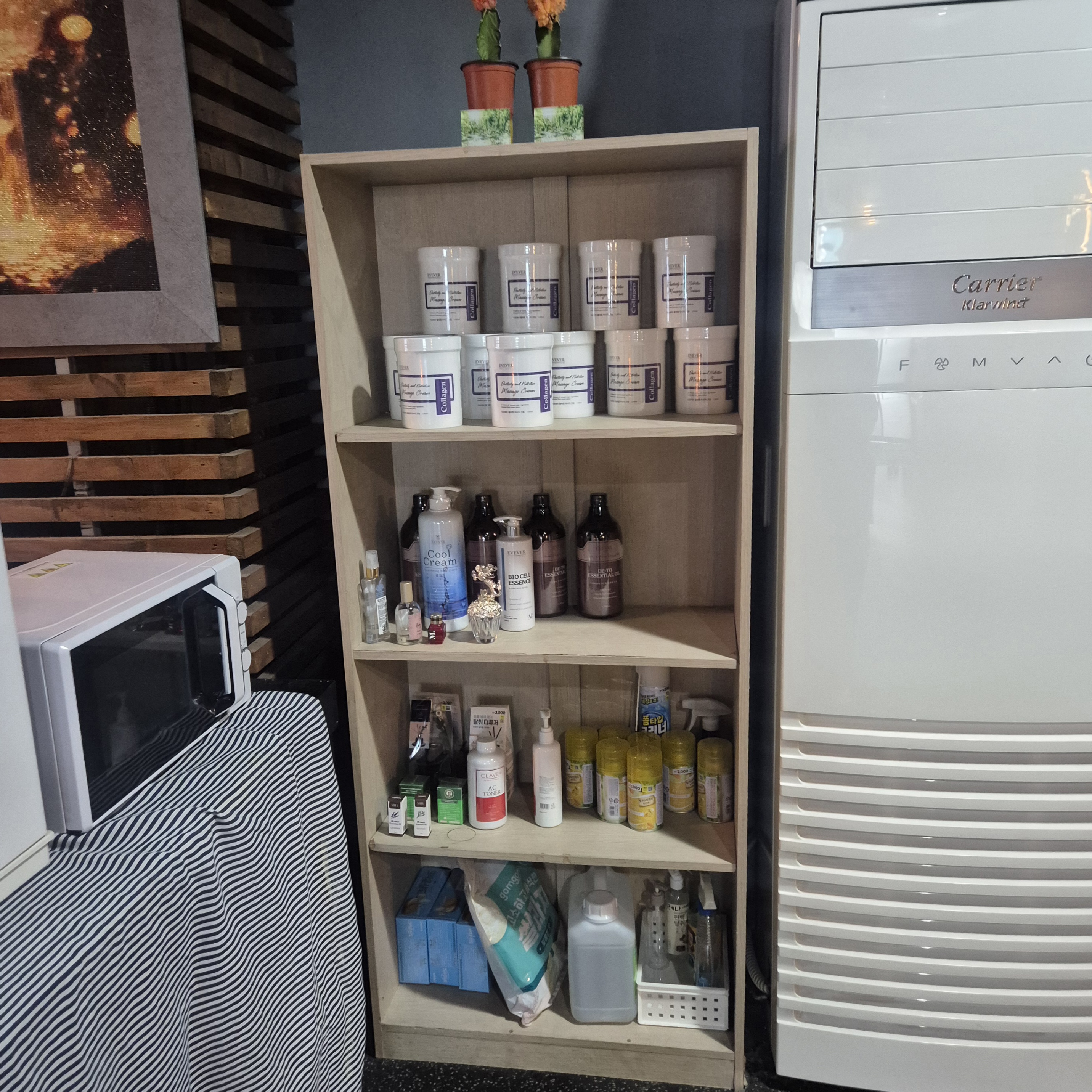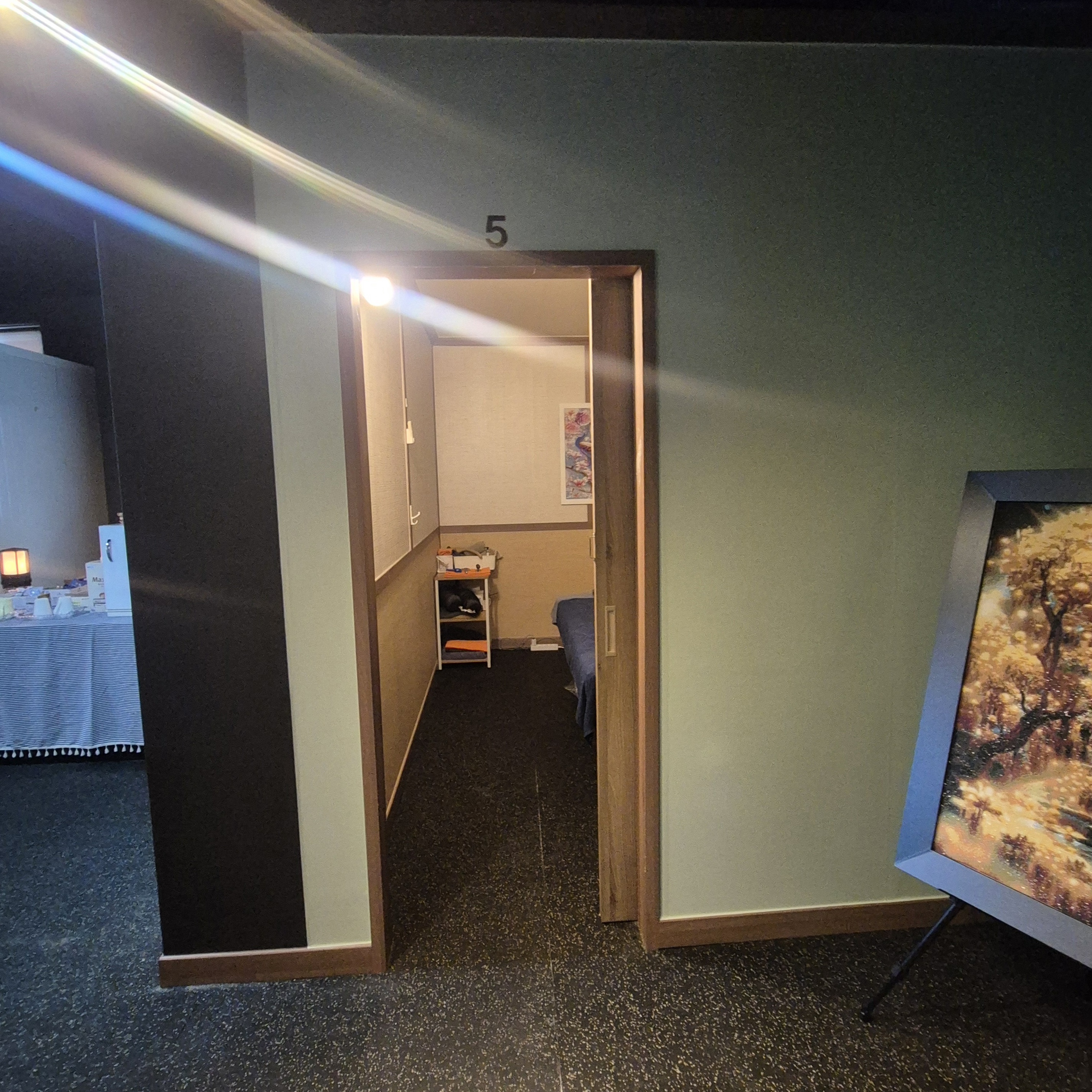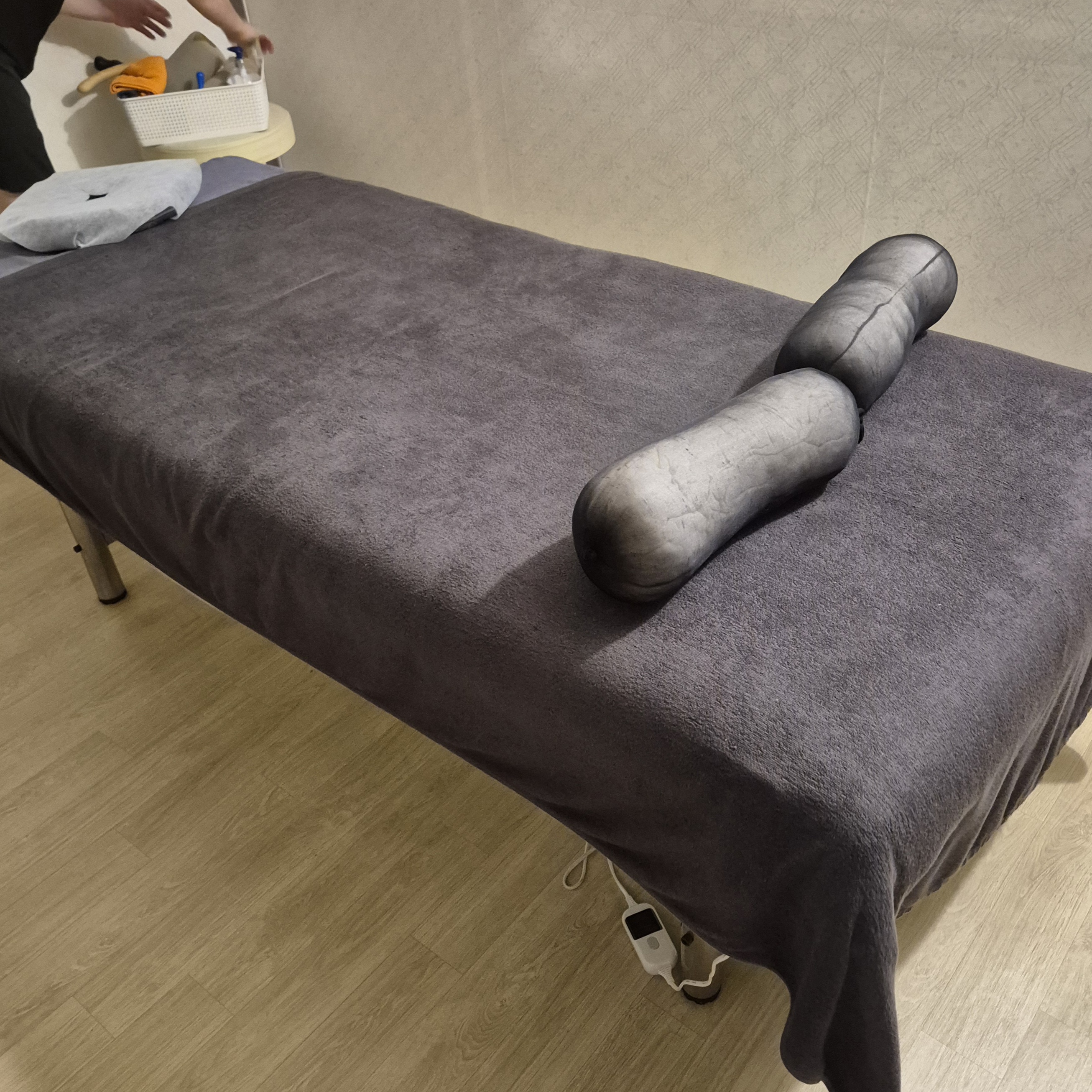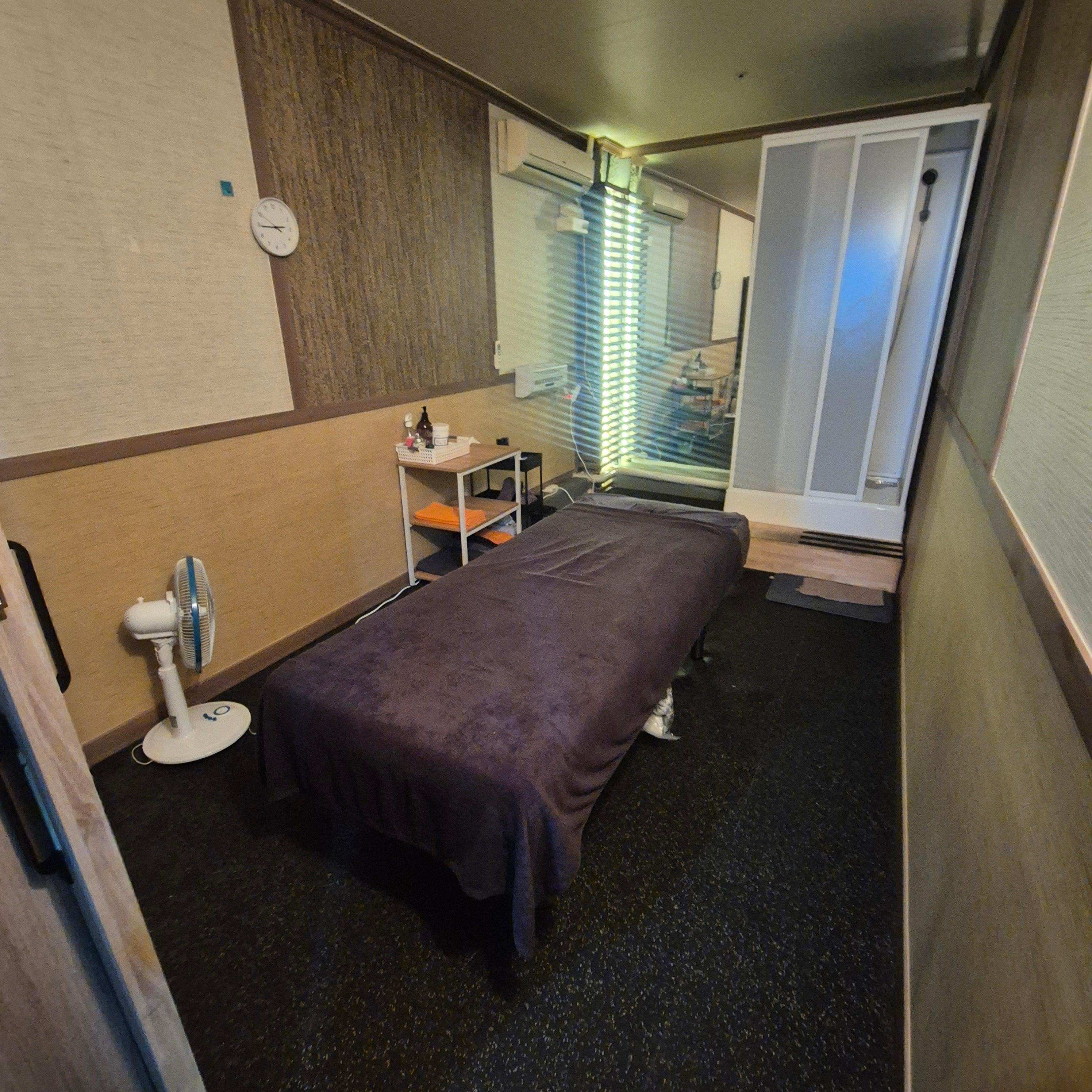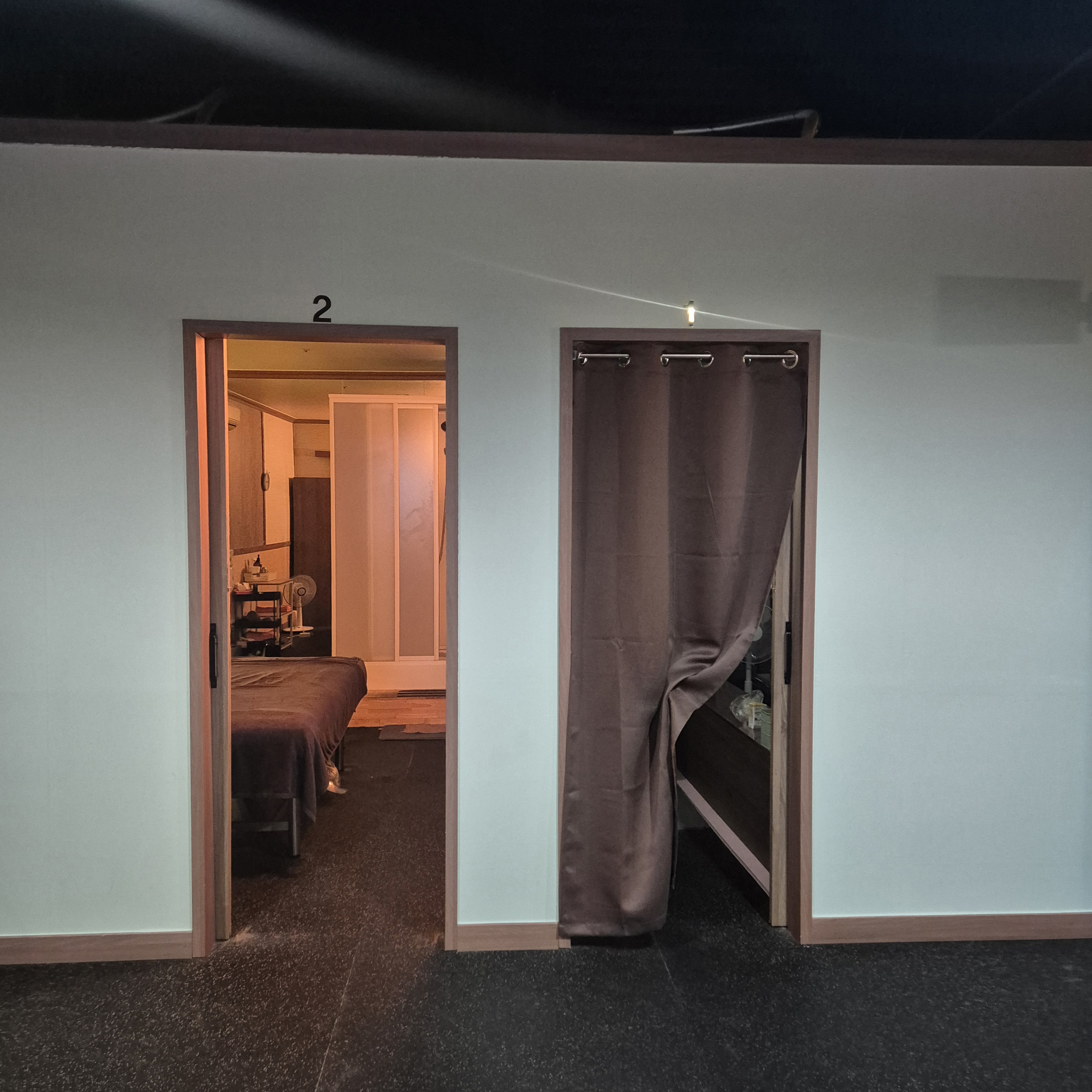 마사지 룸은 커튼으로 구획이 나뉘어 있어서