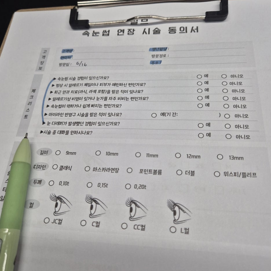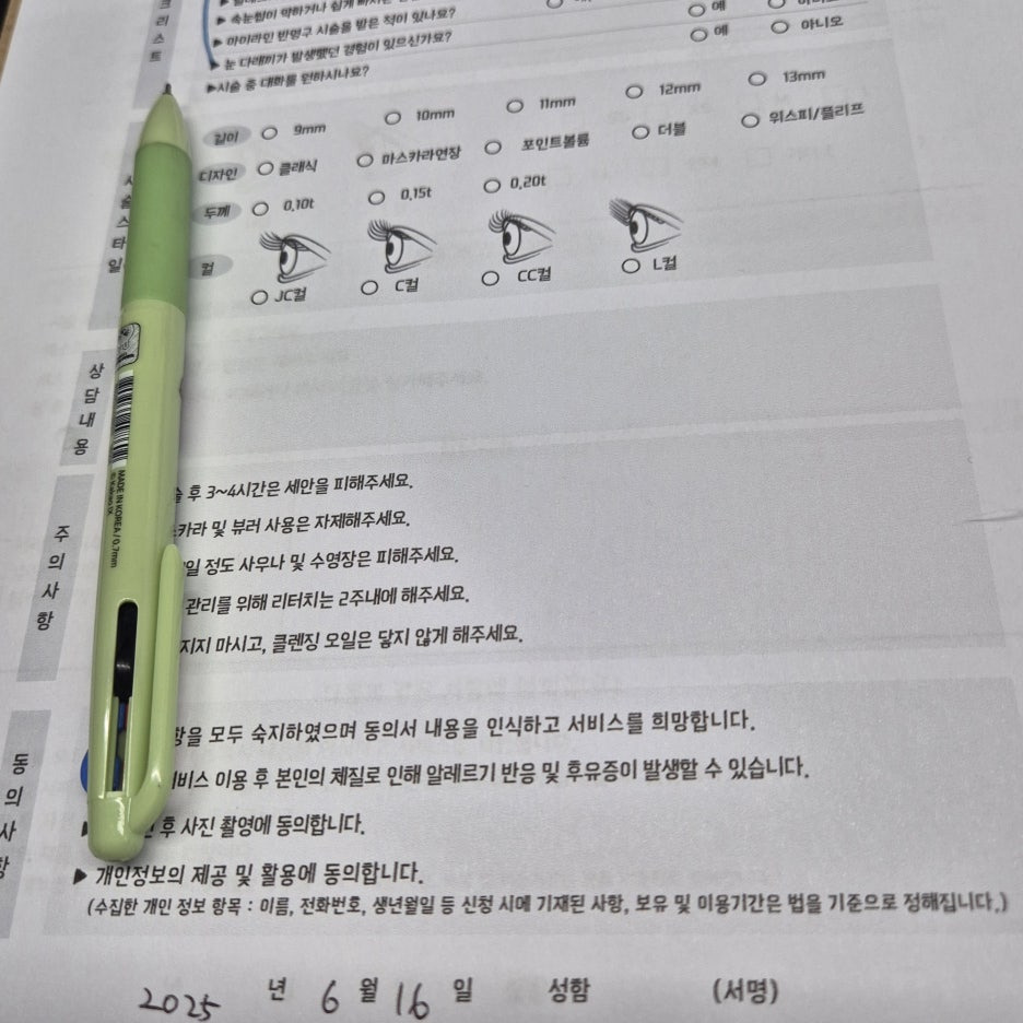 저는 자연스럽지만 눈매를 또렷하게 살려주는 C컬 9~10mm로 디자인했어요.