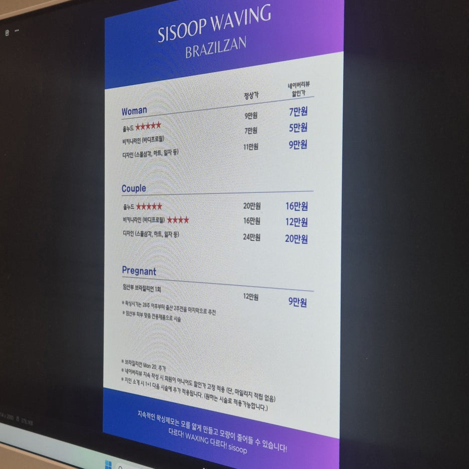 그중에서도 브라질리언 왁싱이 가장 인기 있는 메뉴라고 해요.