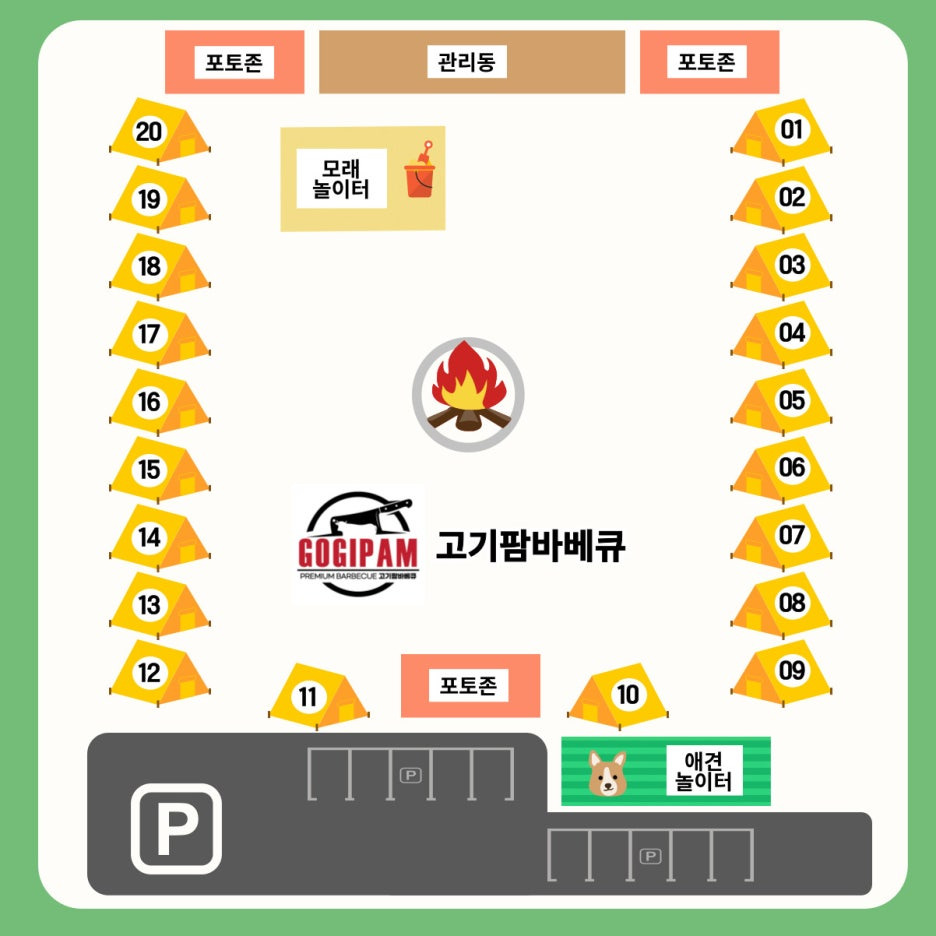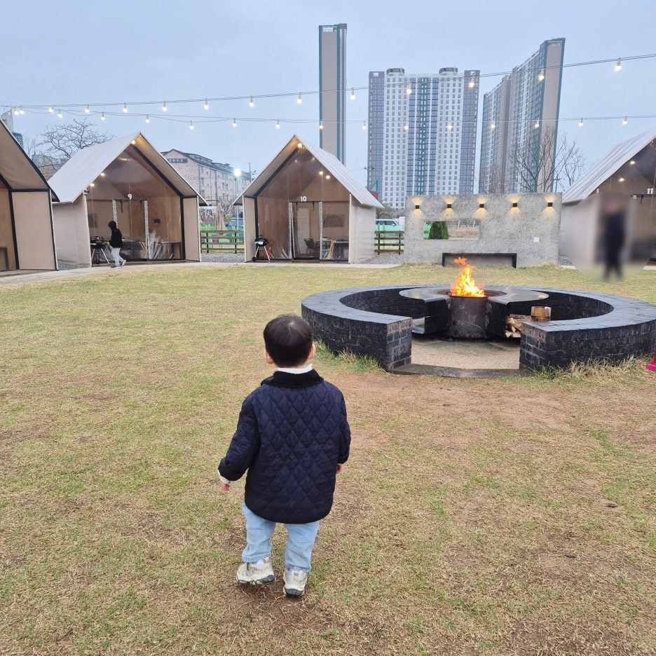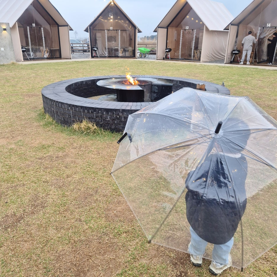 글램핑 텐트와 불멍 존이 한눈에 들어오더라고요.