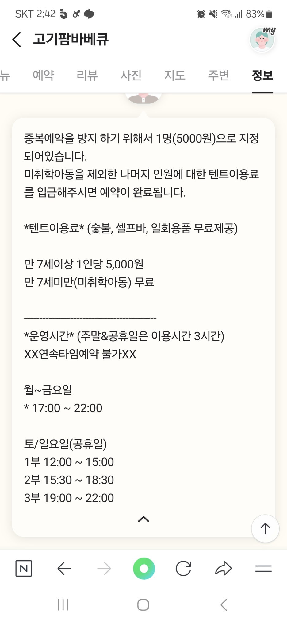 평일, 주말 이용할 수 있는 시간대가 다르더라구요